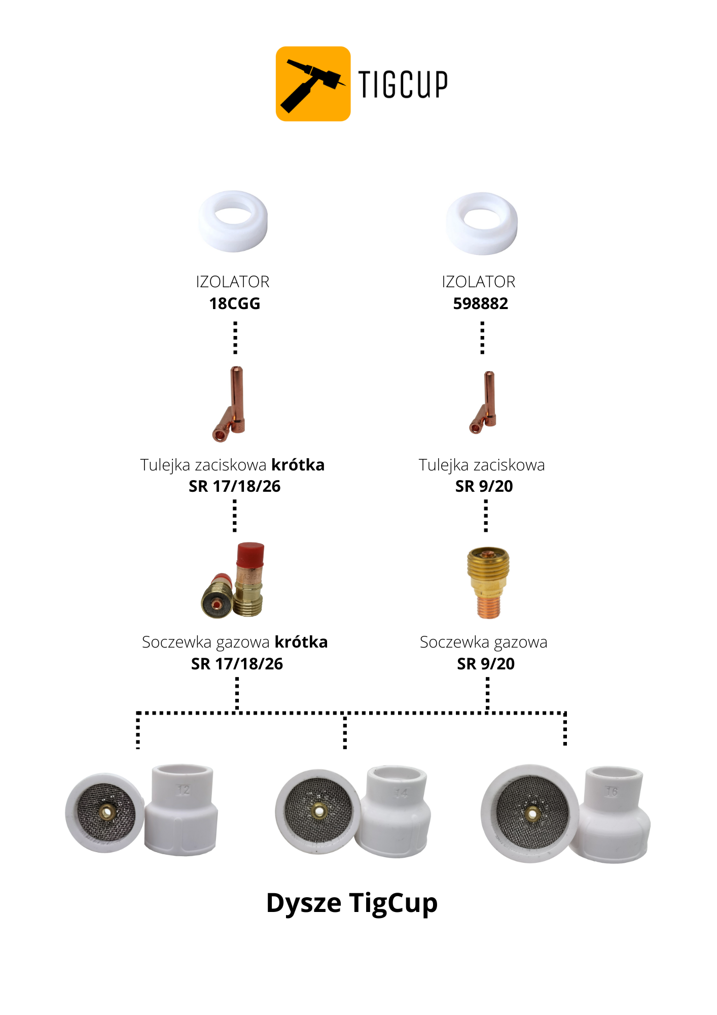 Dysza ceramiczna TigCup #16 przeznaczona jest do zastosowania w uchwytach TIG WP17/18/26 lub WP 9/20 oraz prądu stałego DC do 170A. Nie spawać prądem zmiennym AC.